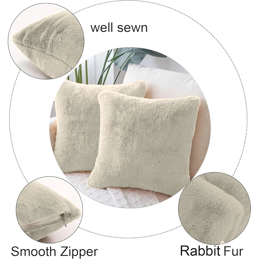Luxe Home Cushion Cover Duble Side Rabbit Fur Plain Design Covers Set of 2 for Sofa BedColour Beige