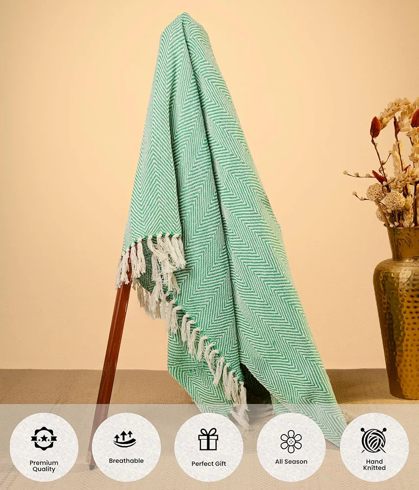 Sajavat Home Hand Knitted Pure Cotton 3 Seater Sofa Throw Colour Green