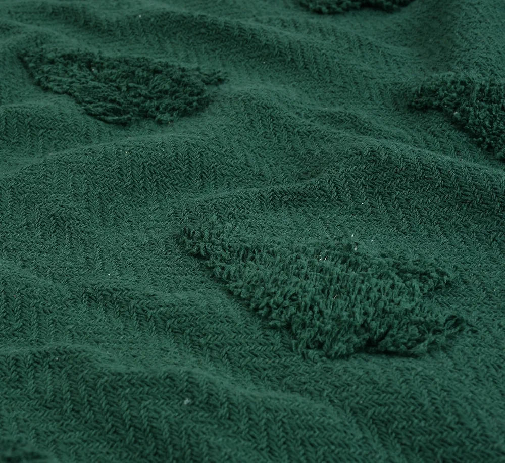 - Elevate your home decor with the Dark Green Cotton Throw, a luxurious addition that adds texture and sophistication to any living space.