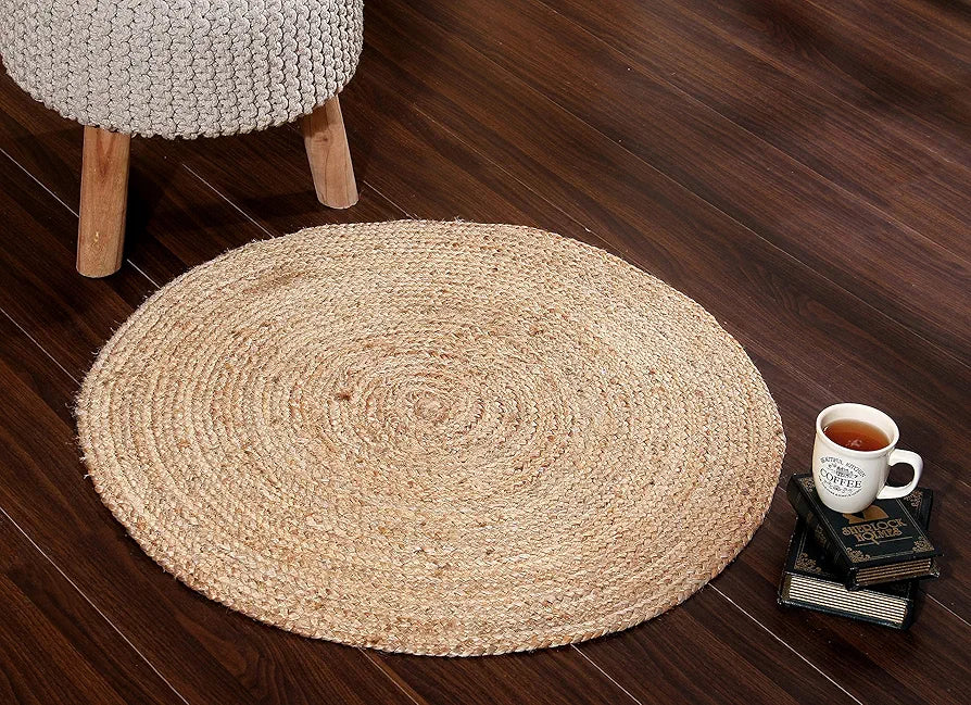 Sashaa World Jute Rugs Handcrafted Woven & Reversible Design Jute & Cotton Braided Round Carpet Colour Natural & Black