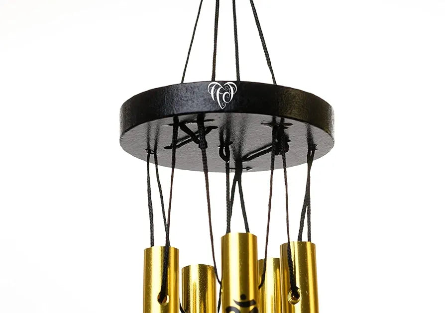 - Material: This Tej Gifts OM printed wind chime has a sturdy wooden plate at the top, quality metal 5 golden pipes, and strong nylon to hang and hold the pipes. These metal pipes are rust-free and lightweight. It is small size wind chime.