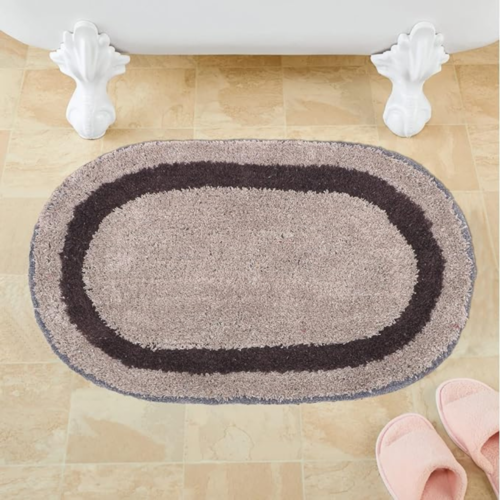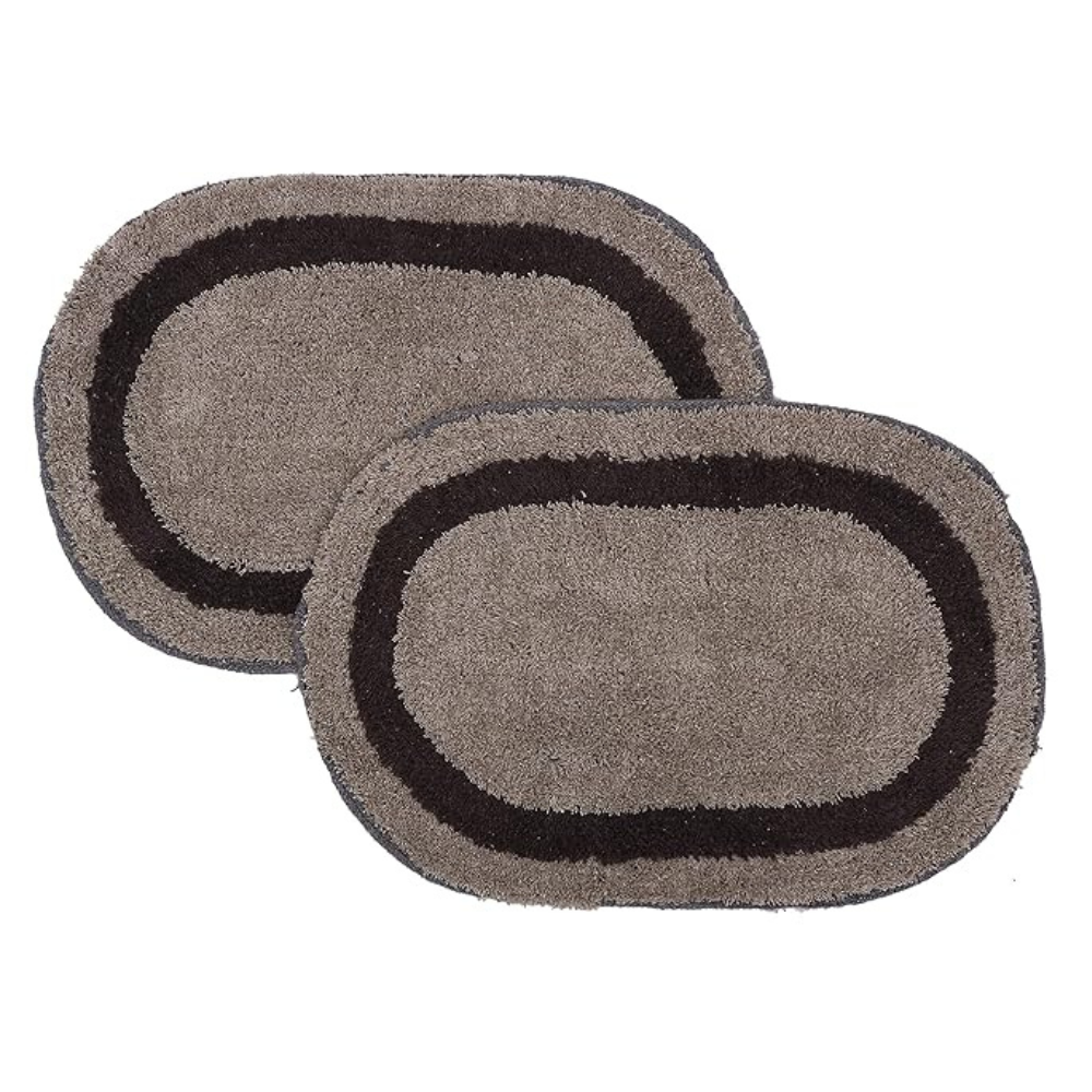 The Home Talk Cotton Bathmats Water Absorbent Floor Mats Pack Of 2 Brown Oval