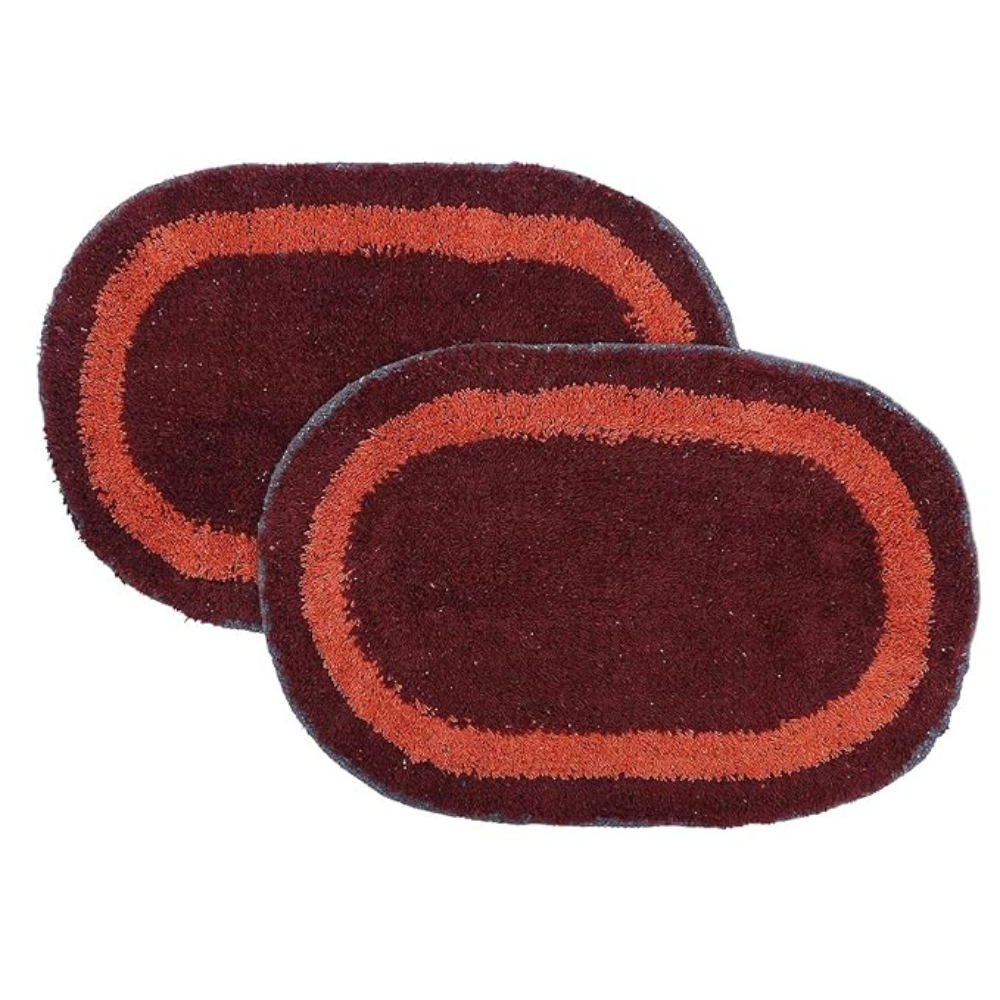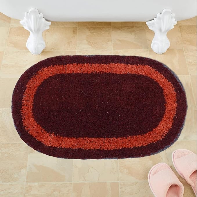 The Home Talk Cotton Bathmats Water Absorbent Runners Regular Striped Rugs Floor Mats Red Oval (Pack of 2)