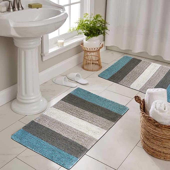 - EXCELLENTLY MADE: Door Mats for bathroom are made using an exceptional cotton pile with a spray latex backing, helping them maintain a mushy feel while staying in place.
