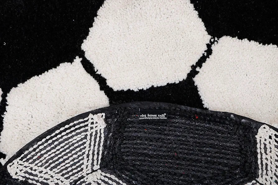 The Home Talk Kids Bath mat Floor Rug Football Design Cotton Round Anti-Skid Backing White & Black