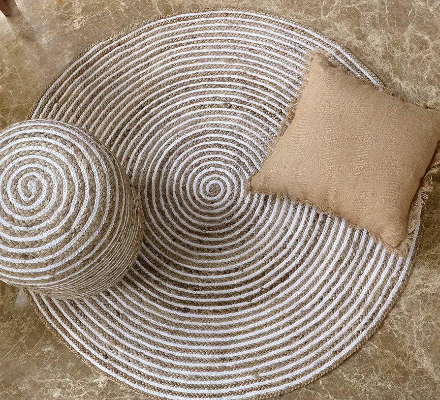 The Home Talk Natural Handcrafted Braided Round Jute Rug 120 cm White
