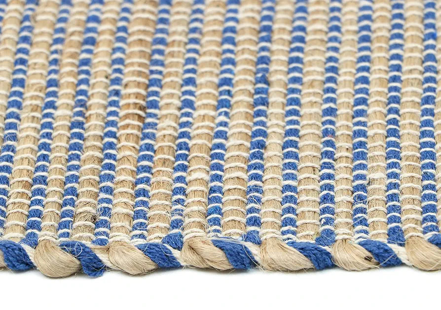 The Home Talk Natural Handcrafted Jute Rug Traditional Carpet For Living Room Navy Blue