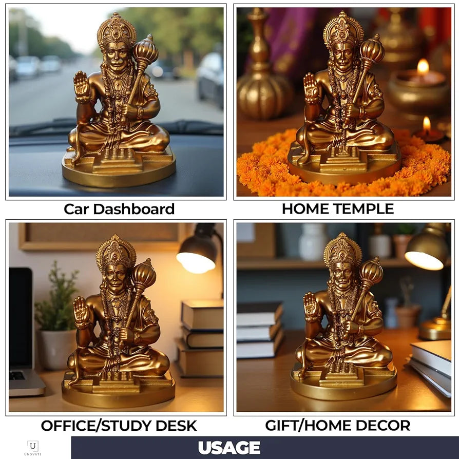- Golden Color Hanuman Idol : The idol is crafted with a sleek Golden finish best suited for Car Dashboard.