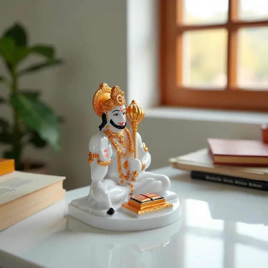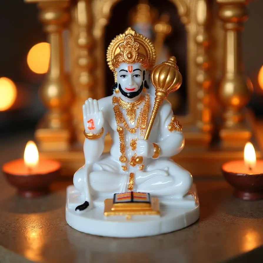 - White Color Hanuman Idol : The idol is crafted with a sleek black finish best suited for Car Dashboard.