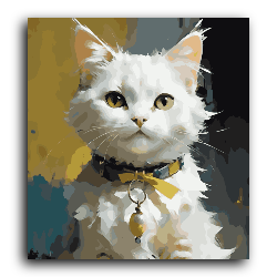 - White Cat artwork is divided into numbered sections on canvas (pre-marked canvas), and by matching the provided paints to these numbers, you gradually complete the painting with precision and ease.