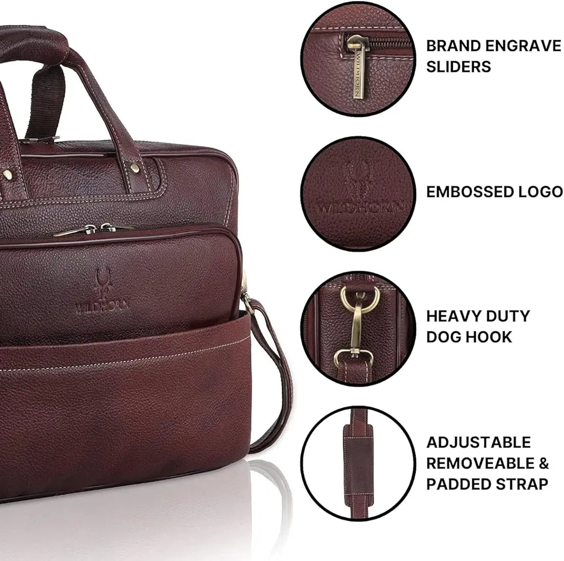 - LEATHER: If you love leather, timeless design, fashionable and durable bags, you'll surely love WILDHORN'S Leather Bags.Crafted from leather this bag is meticulously crafted into a adorable, durable & classic masterpiece by highly skilled professionals.Perfect for office, meeting, working, travelling and other occasions
