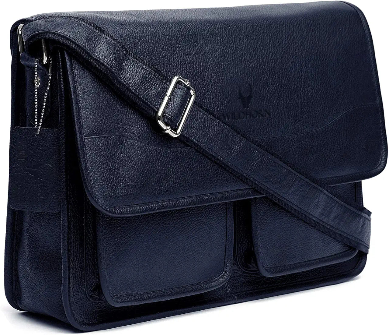 Urban Edge Leather Laptop Messenger Blue Men's Bag | Blue Colour
