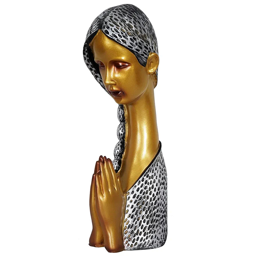 - Size of the product:- 14 x 5 inch. Welcome Lady. This is a statue of a lady with her hands folded in the 'Namaskara' or 'Namaste' posture or the 'Mudra'. Across India this posture means - the greetings, just as saying a warm 'hello'<br>